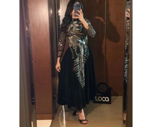 اختيار مثالي لعاشقات الفخامة، يتميز بقماش مخمل شتوي دافئ وقصة أوف شولدر أنثوية تمنحك إطلالة جذابة دون مبالغة، مناسب للمناسبات الرسمية والسهرات الخاصة.
