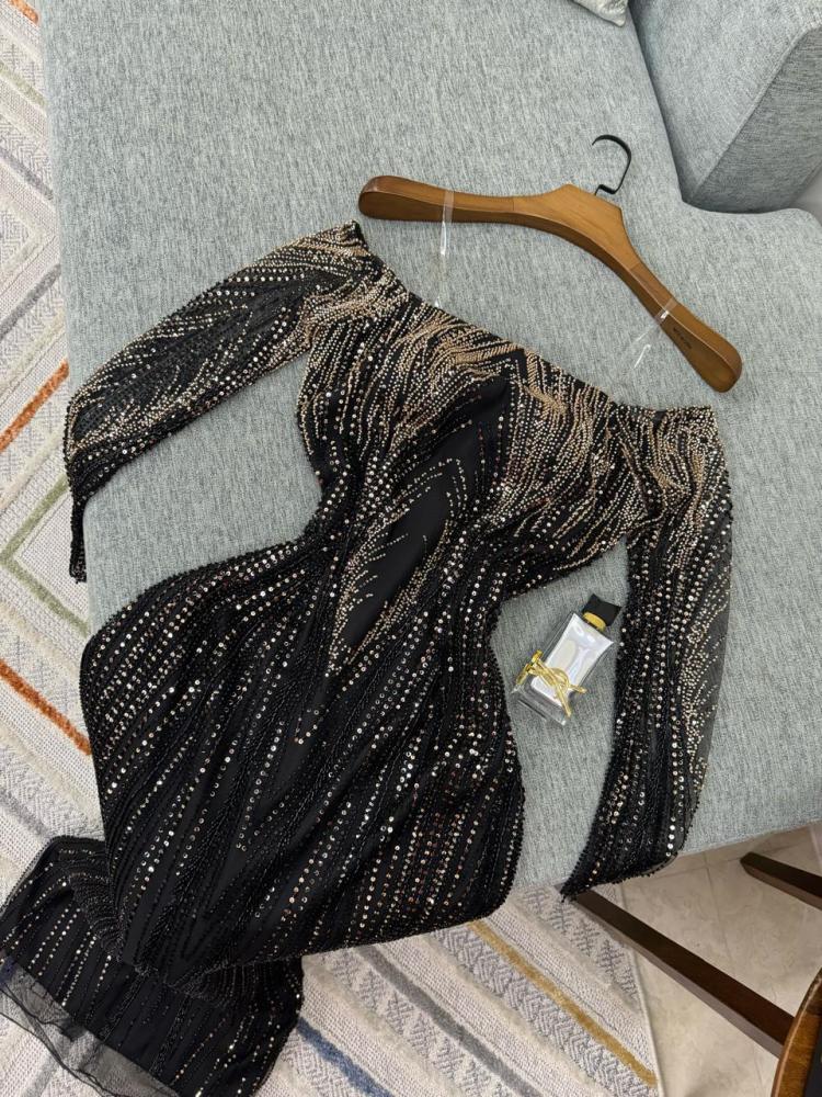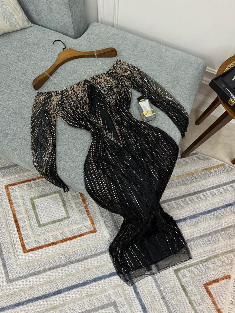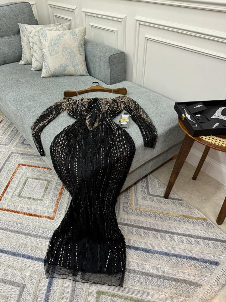 فستان سهره فخم مطرز باللون الاسود من لوكا فاشن