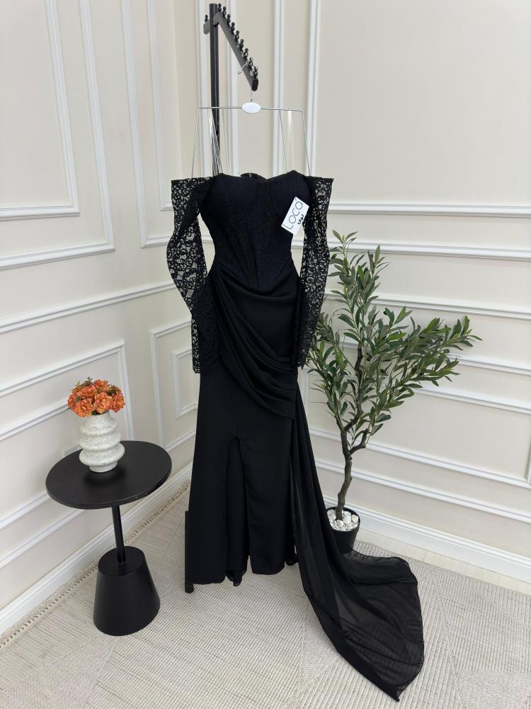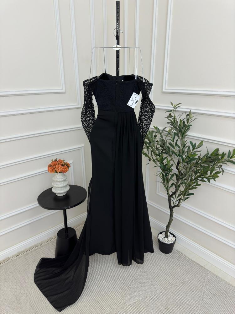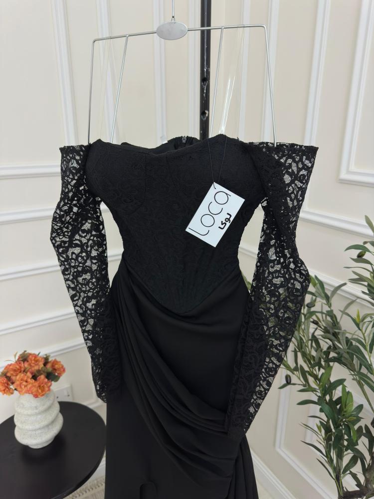 فستان اسود ناعم بدانتيل