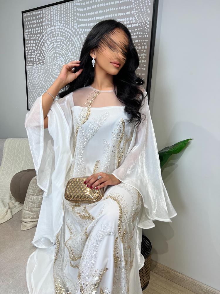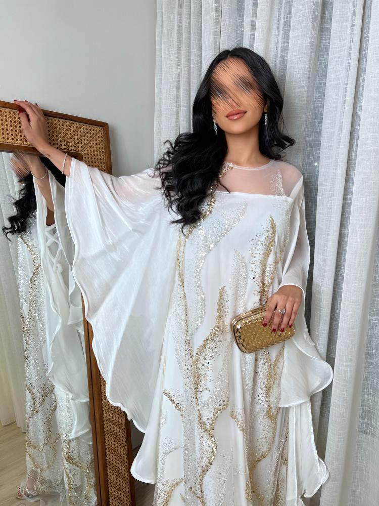 اجعلي هذه الجلابية الكويتية المطرزة جزءًا من خزانة ملابسك وتألقي بإطلالة ملفتة ومبهرة في كل مناسبة. احصلي على إطلالة عصرية وتقليدية في آن واحد مع هذه الجلابية الراقية والأنيقة.