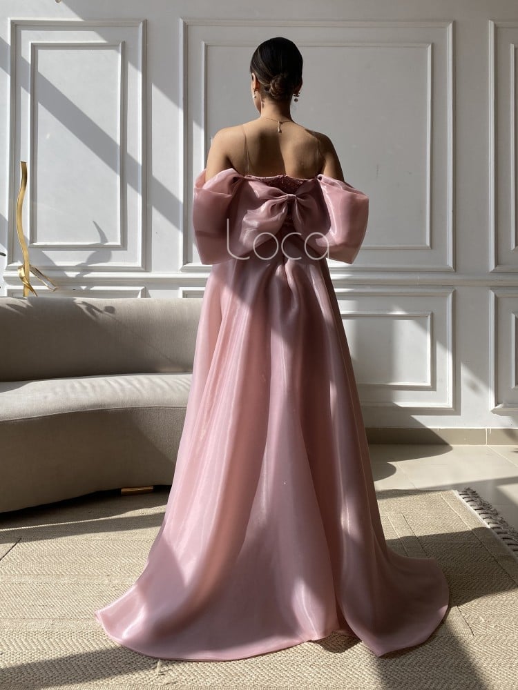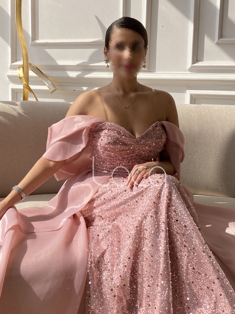 نوع التصميم: فستان وردي انيق مميز بذيل