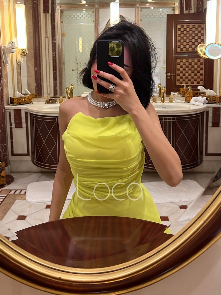 نوع التصميم: فستان اصفر انيق مميز بطيات