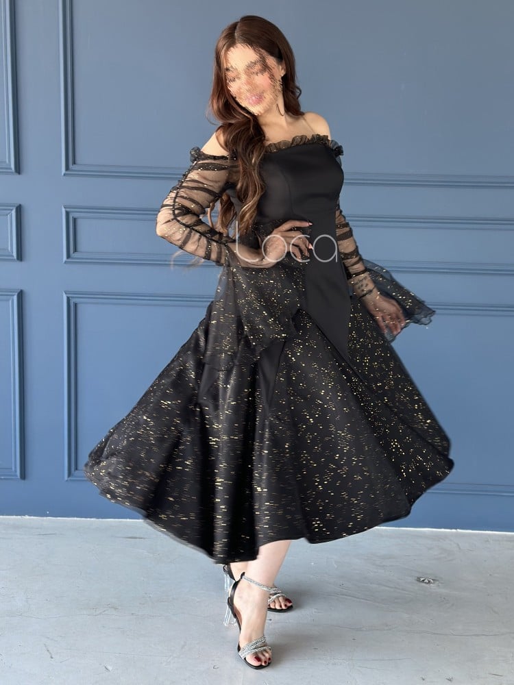 نوع التصميم: فستان اسود بأكمام بكشكش