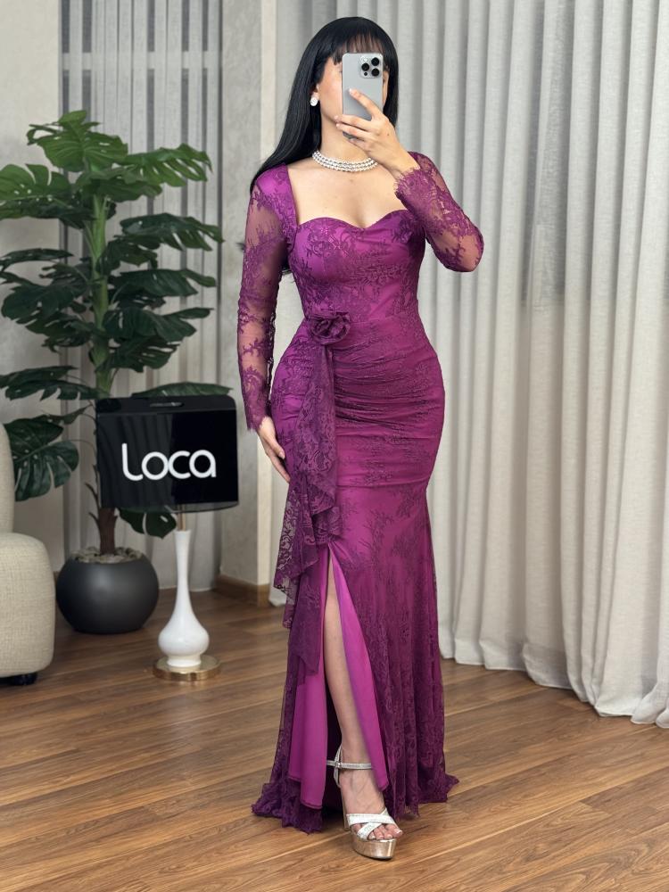 تميّزي بإطلالة تخطف الأنظار مع فستان "أريج الأنوثة"، بتصميمه الفاخر المصنوع من الدانتيل الفوشي المزين بالورد الأنثوي الساحر. فستان يعكس فخامة التفاصيل ويبرز جمال القوام بقصة ضيّقة راقية مع فتحة جانبية جريئة تبرز أنوثتك بكل أناقة. مثالي لحفلات الخطوبة أو سهرات المساء الفخمة.