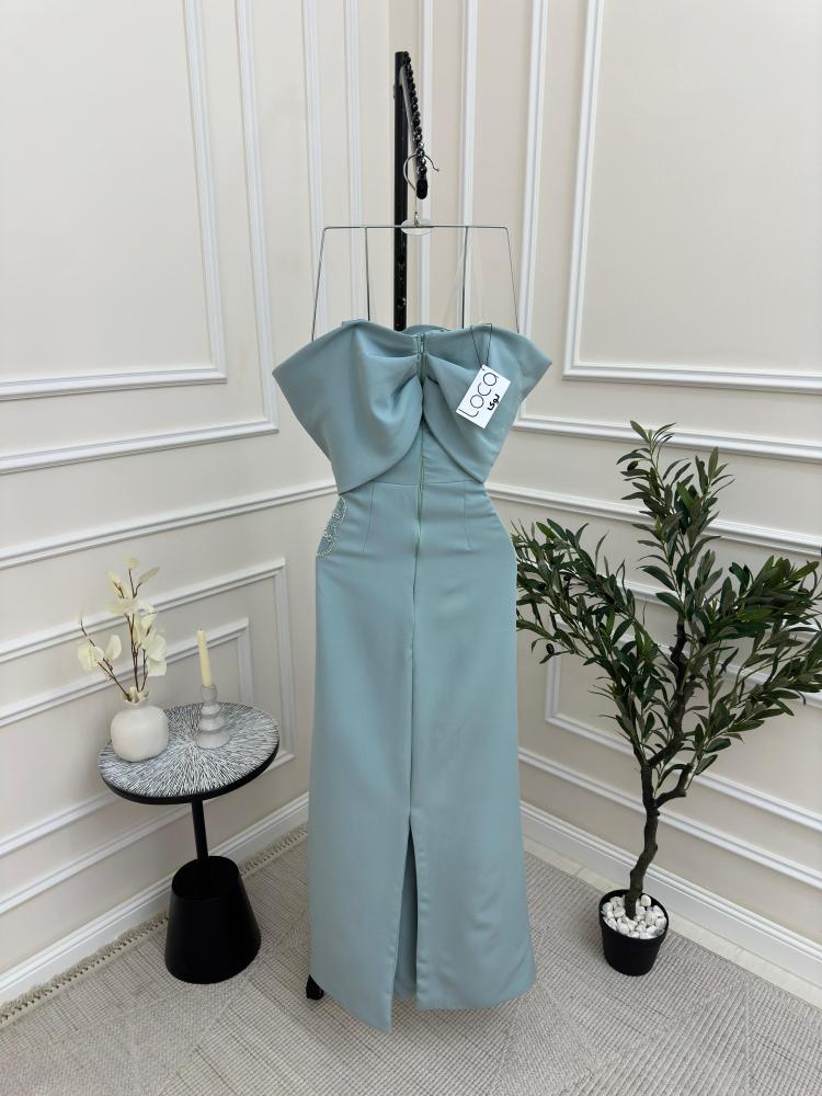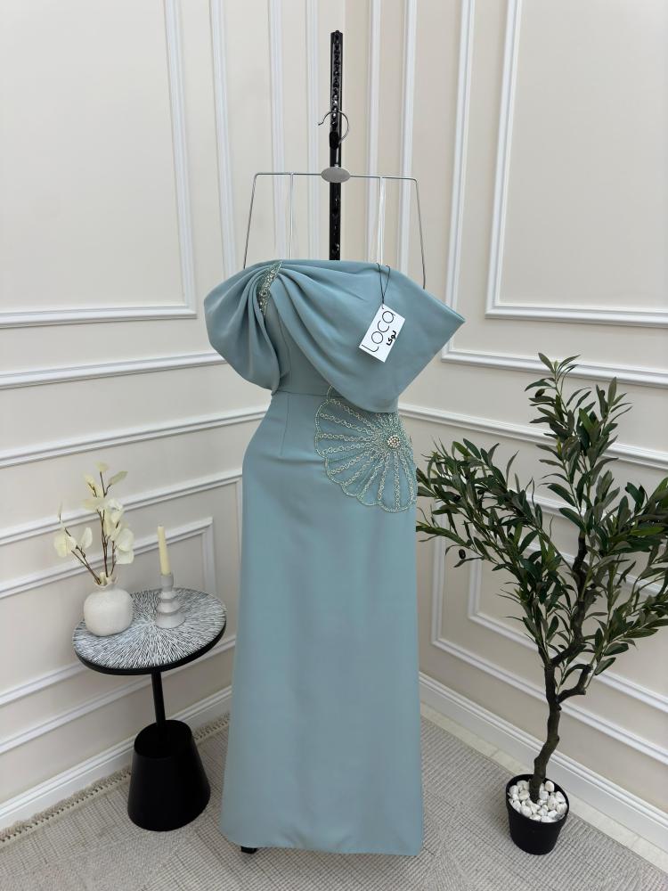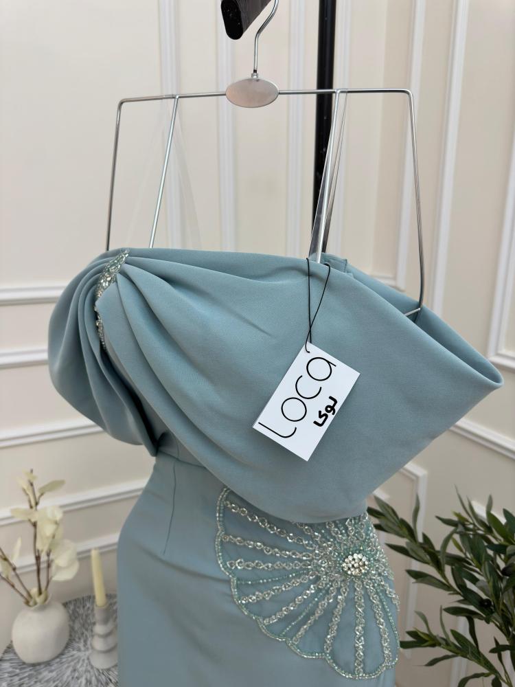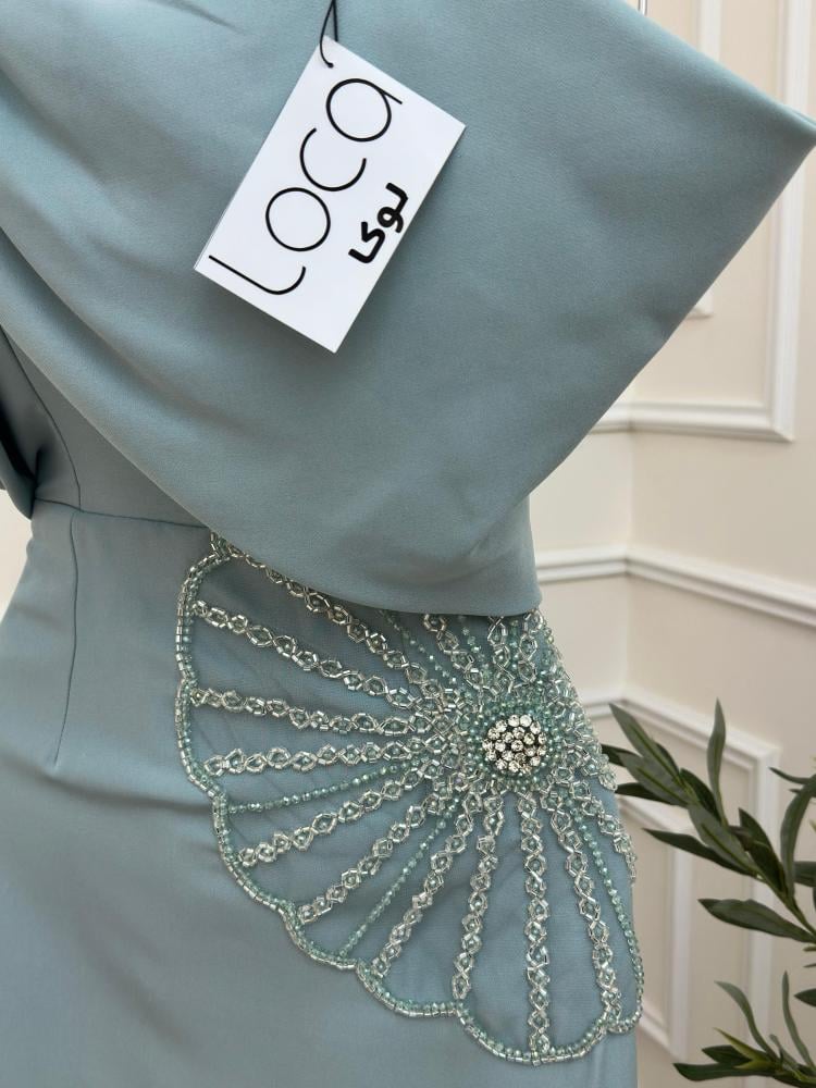 يكتمل التصميم بخياطة مريحة وقصة تناسب الجسم، مما يبرز جمال القوام بأسلوب أنيق ورقيق. الفستان مثالي لمن تبحث عن الأناقة والفخامة في إطلالة واحدة.