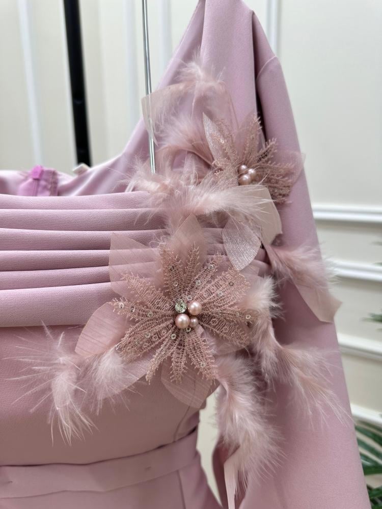 هذا الفستان الأنيق والرقيق هو تجسيد للأنوثة والجاذبية. مصنوع من قماش باربي ناعم، يتميز بلونه اللحمي الرقيق والأنيق.