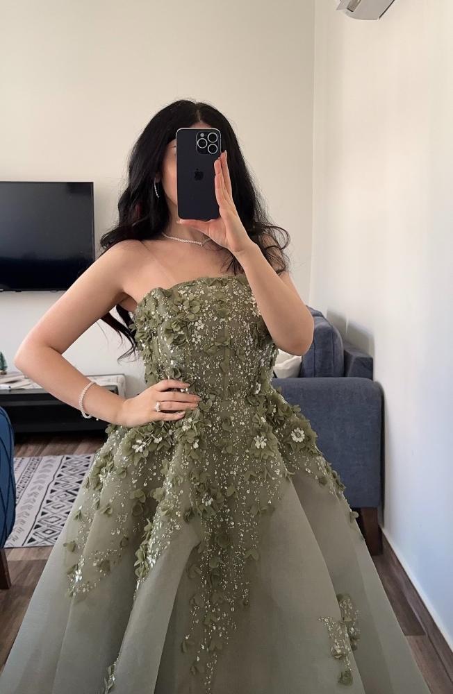 فستان سهره ملكي باللون الأخضر الفاتح وبتطريز فخم من لوكا فاشن