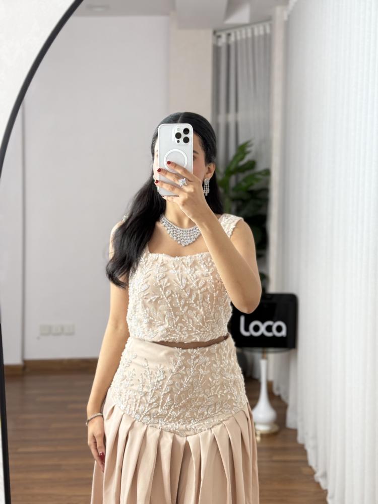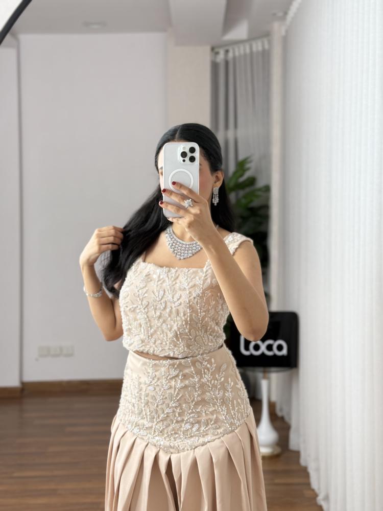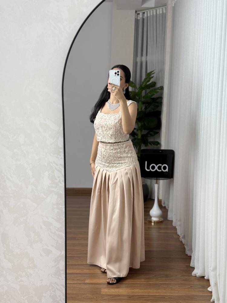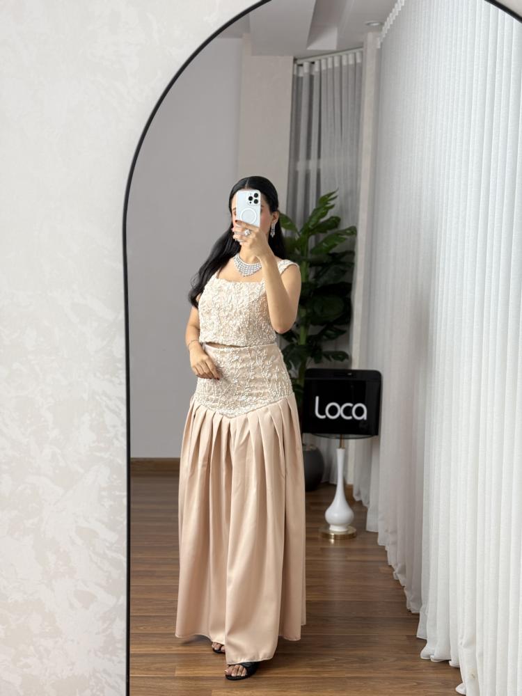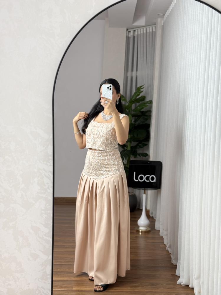 طقم تنوره وبلوزه بتطريز فخم من لوكا فاشن