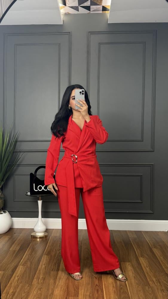 طقم رسمي باكمام طويله باللون الاحمر من لوكا فاشن