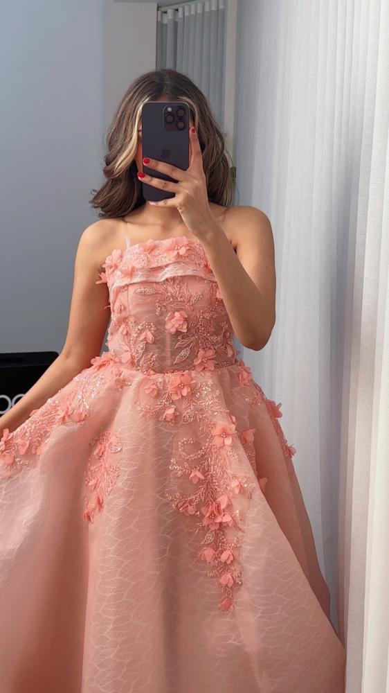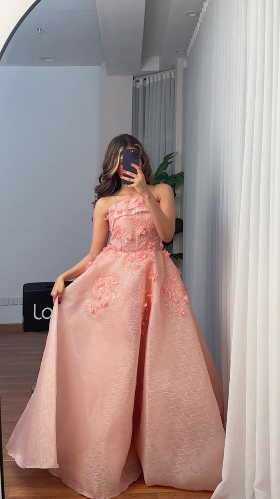 فستان وردي ساحر بتفاصيل تنطق فخامة وأنوثة