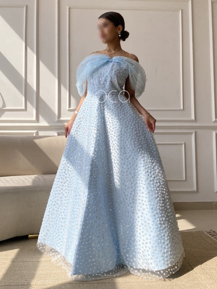نوع التصميم: فستان سماوي بلمسات تطريز