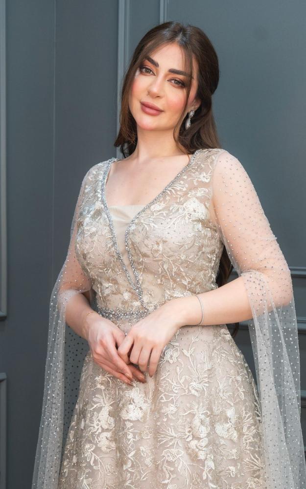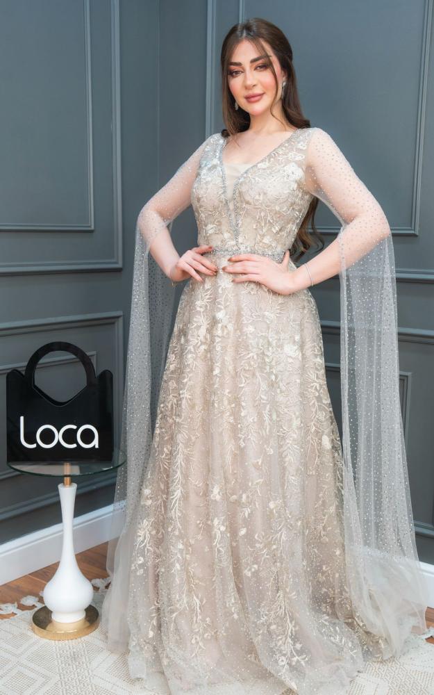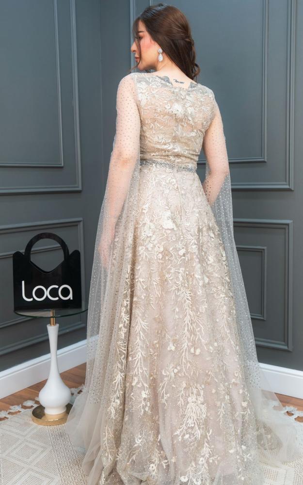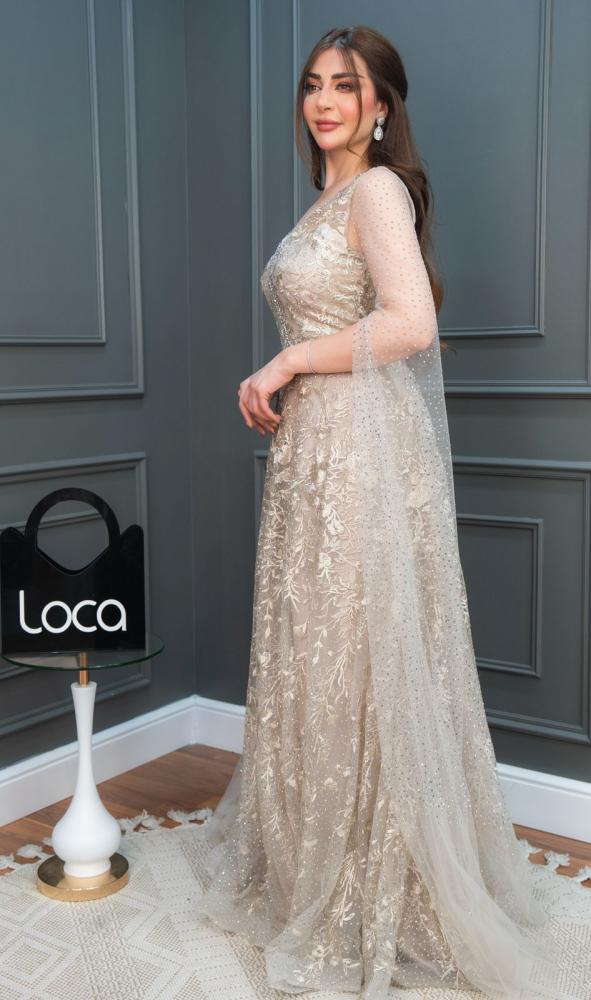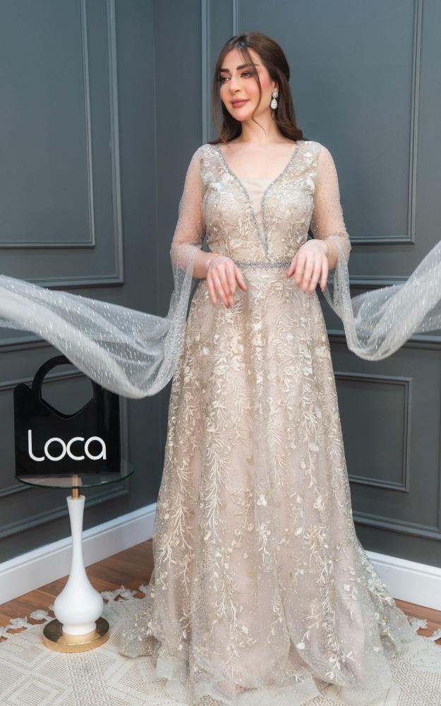 فستان سهره مطرز باكمام طويله من براند لوكا فاشن