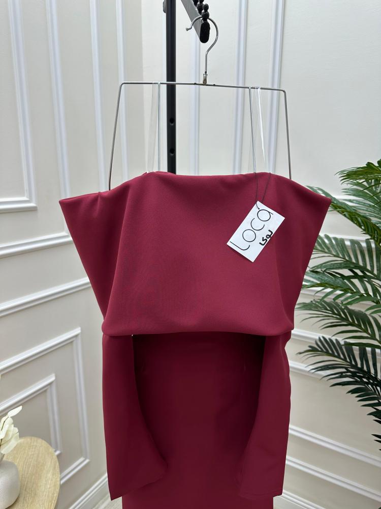 اللون الأحمر الغني والجذاب يعكس طابعًا جريئًا وأنيقًا، ويناسب مجموعة واسعة من ألوان البشرة. طول الفستان يصل إلى ألارض تقريبًا، مما يجعله مناسبًا للمناسبات الرسمية والأنيقة.