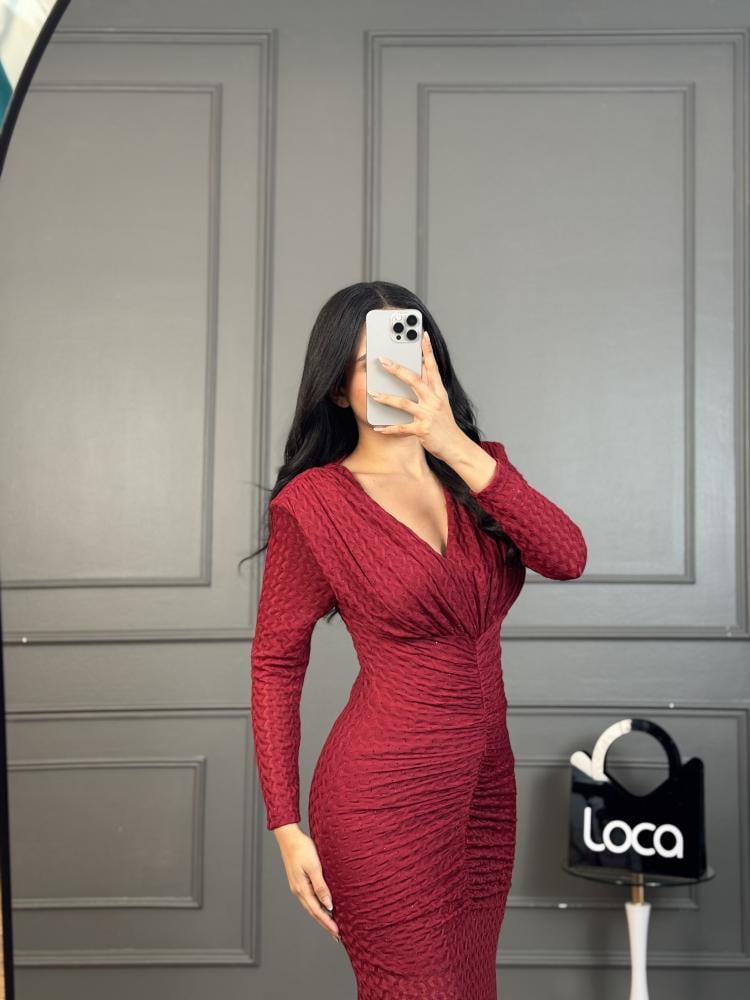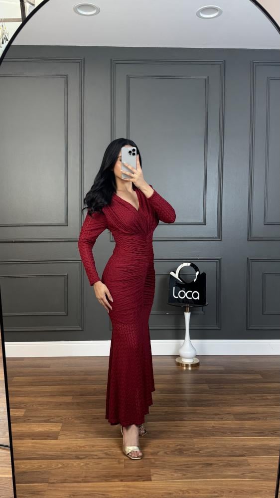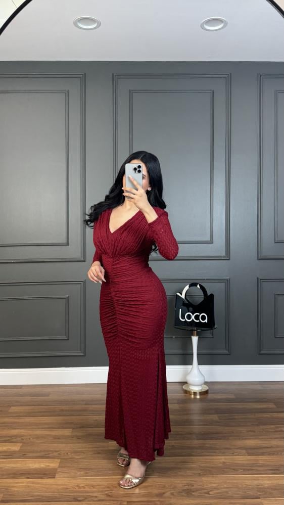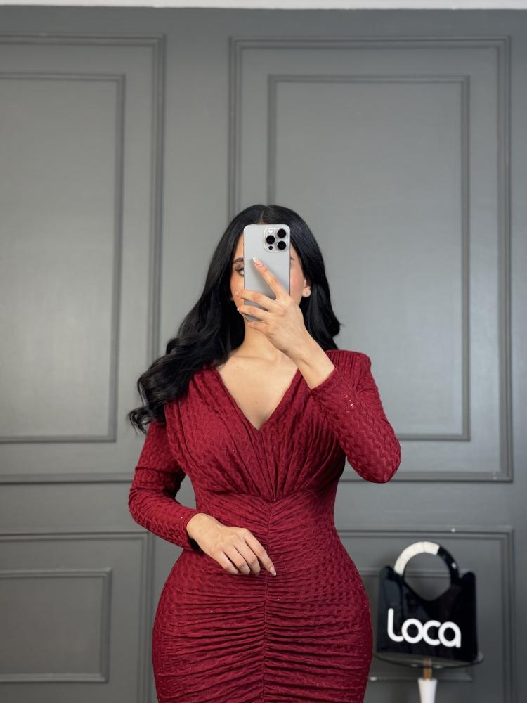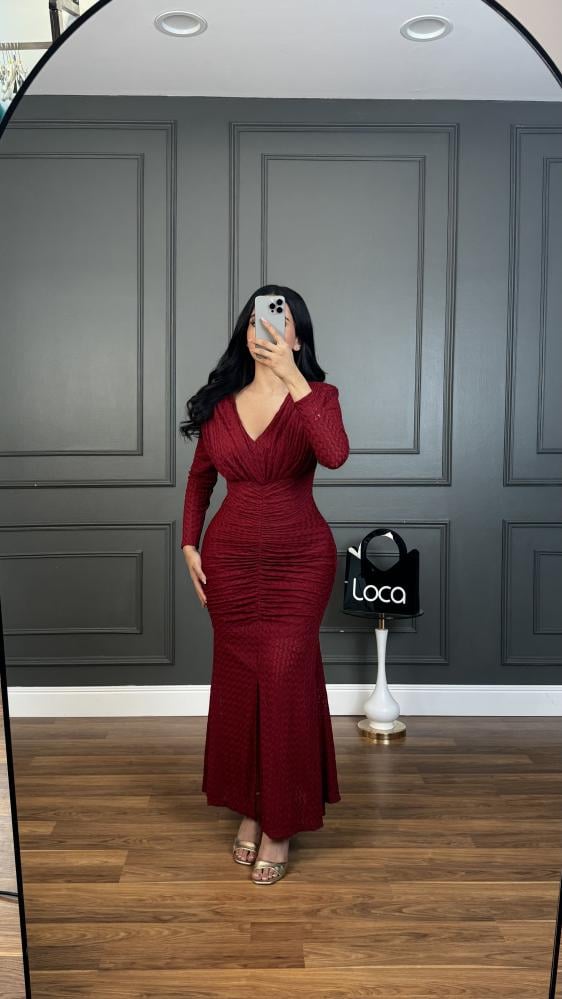 فستان ماسك بفصوص راقيه وبلون برغندي من لوكا فاشن