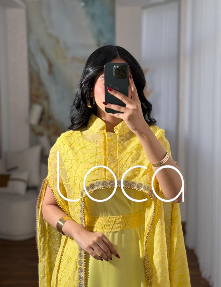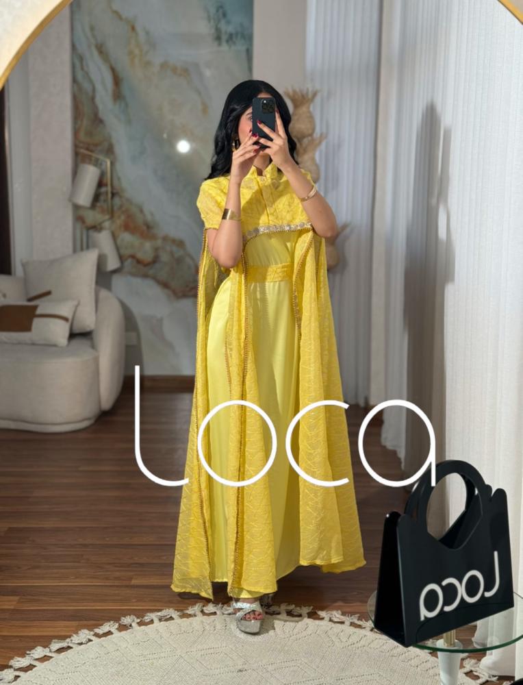 أطلبي الان : جلابية فخمه قطعتين باللون الاصفر