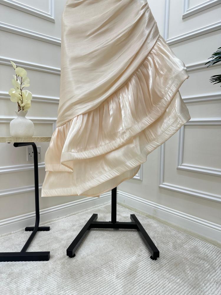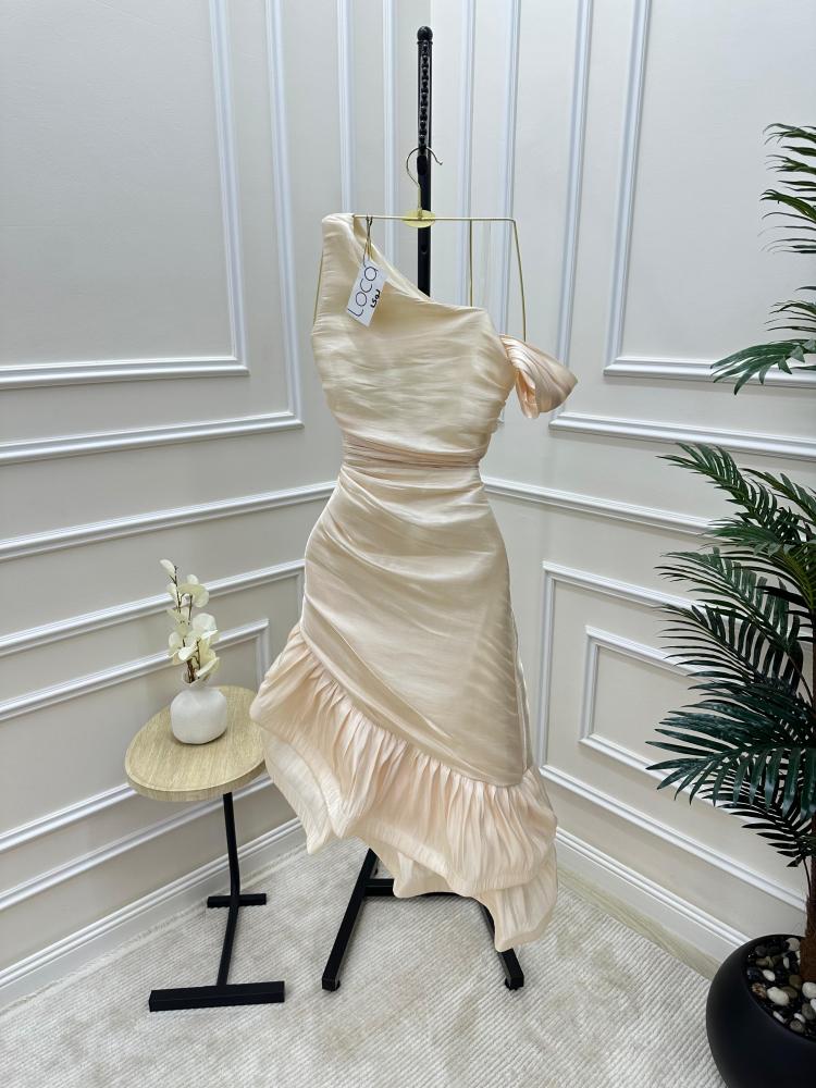 هذا الفستان يناسب مختلف أشكال الجسم، ولكنه يُبرز جمال الجسم ذو الشكل الساعة الرملية أو الجسم النحيف. القصة غير المتساوية تضيف بعدًا جذابًا وتساهم في إظهار قوام جميل.
