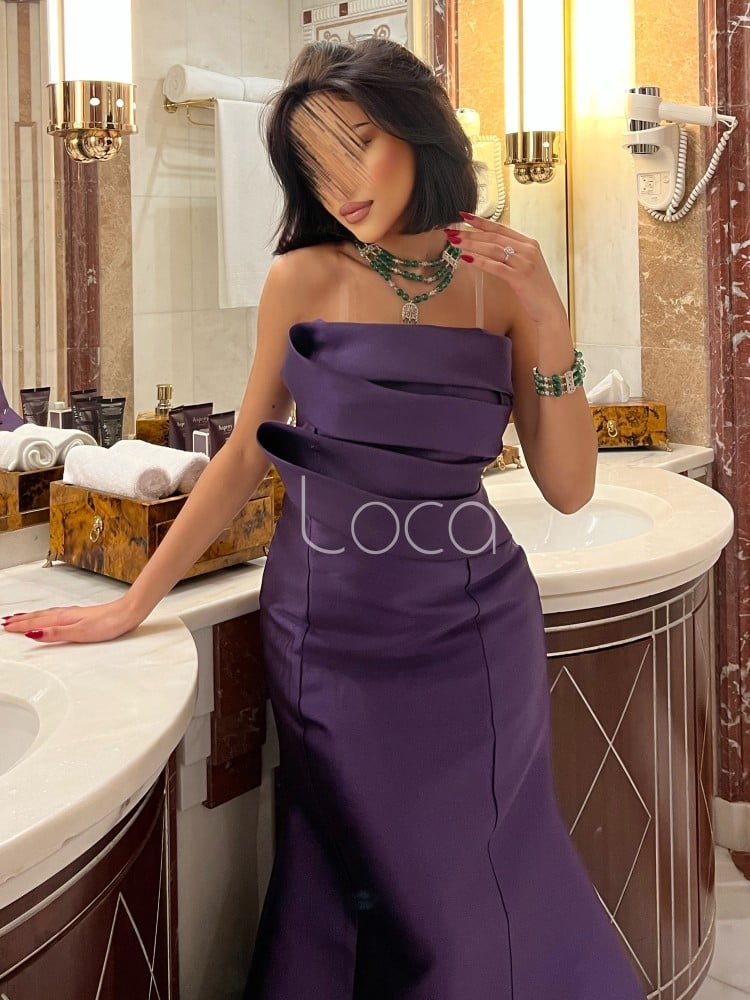 نوع التصميم: فستان ليلكي انيق مميز بطيات