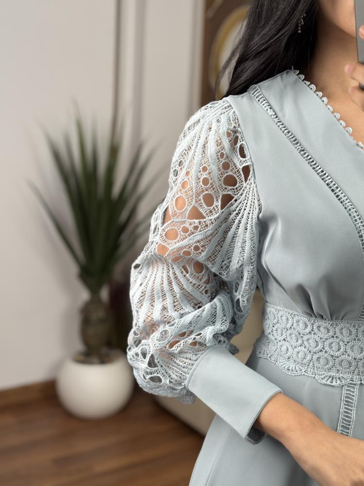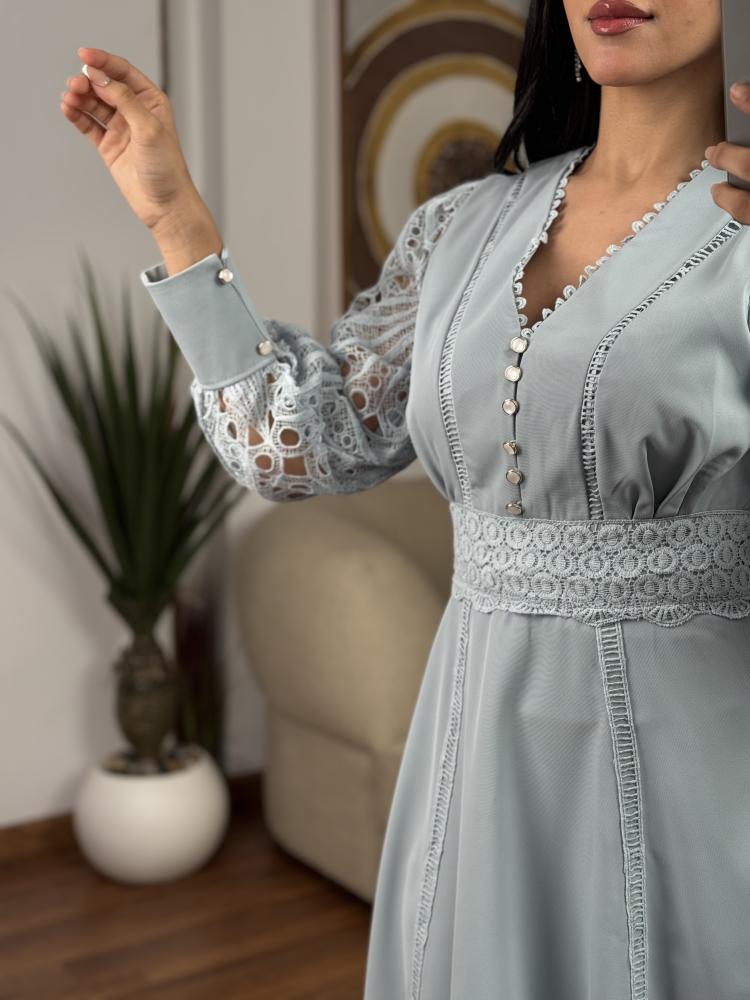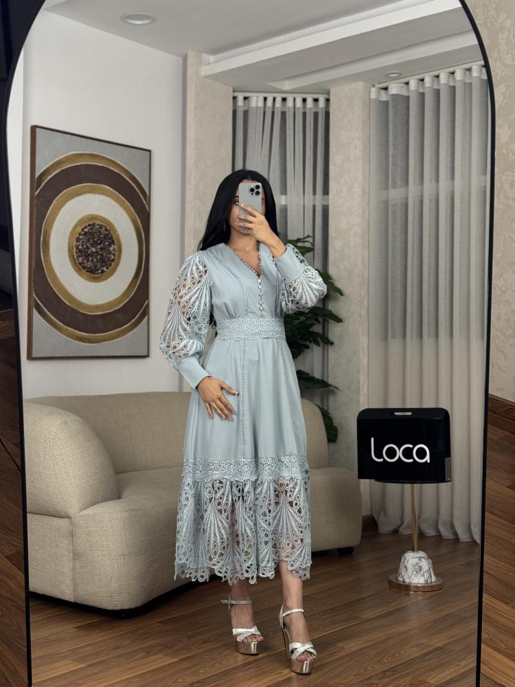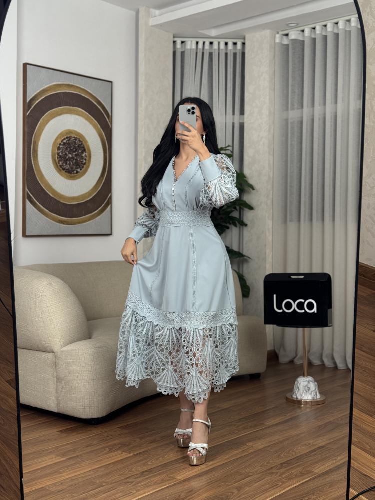 فستان ناعم وبنقوش مميزه باللون السماوي من لوكا فاشن