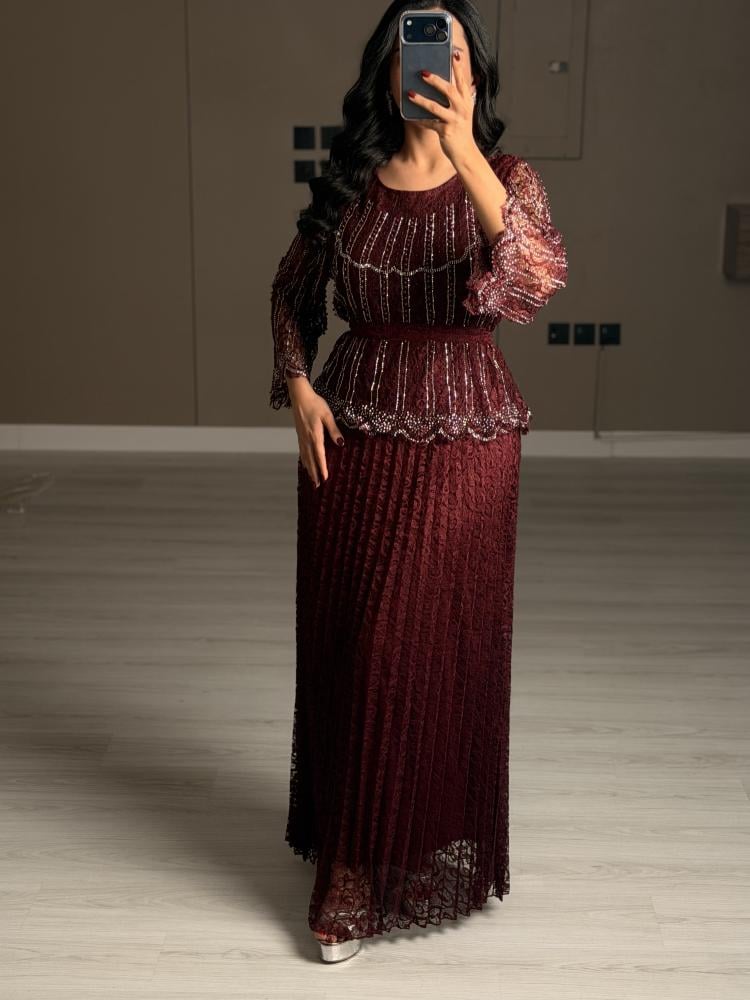 ارتداء هذا التصميم يمنحك إحساسًا بالفخامة الهادئة، الدانتيل ينساب بنعومة ويجعل فستان دانتيل راقي قطعة لافتة دون مبالغة، الأكمام الطويلة تضيف وقارًا يجعل فستان سهرة أنيق محتشم مناسبًا للسهرات