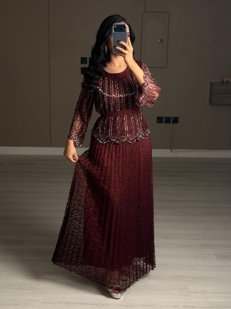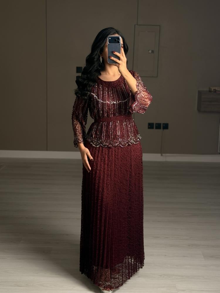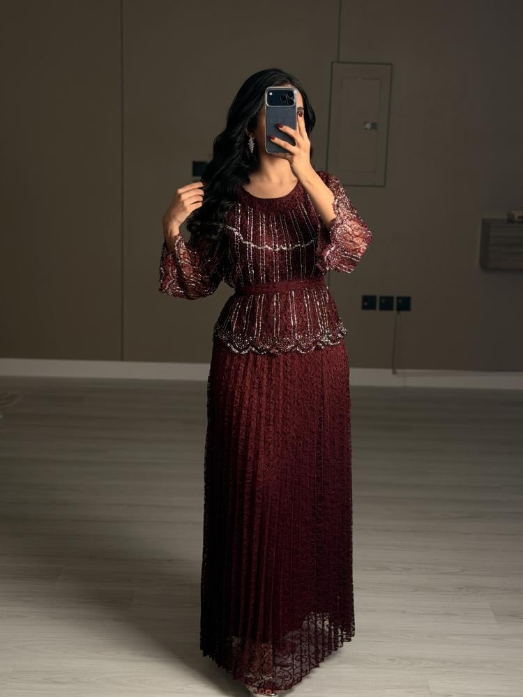 في الإطلالات التي تعتمد على الرقي الهادئ وتفاصيل لا تخضع للموضة العابرة، يلفت النظر فستان سهرة دانتيل طويل بأكمام طويلة ورقبة دائرية لون عنابي كخيار يعكس أناقة كلاسيكية متوازنة، الدانتيل يمنح التصميم طابعًا فخمًا واضحًا بينما يضيف اللون العنابي عمقًا يجعل فستان دانتيل عنابي مناسبًا للأمسيات الراقية