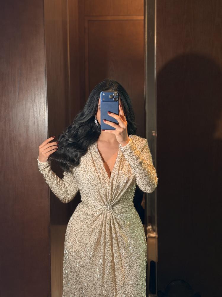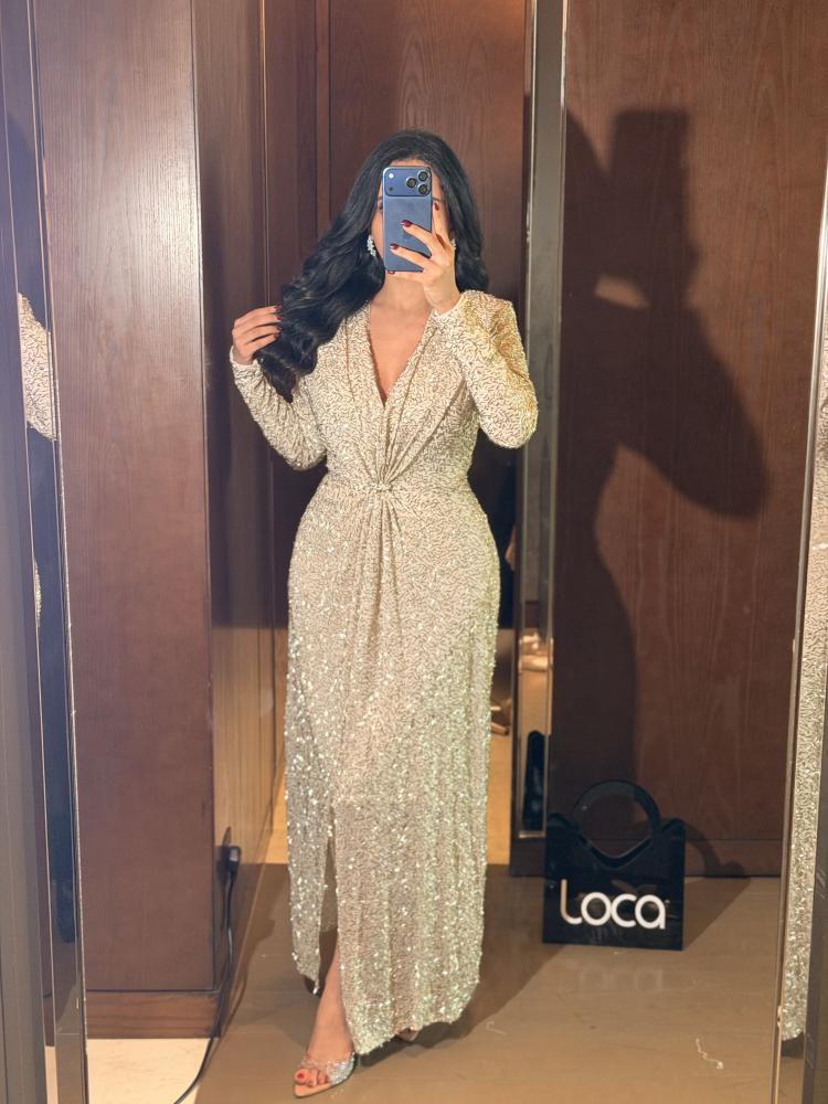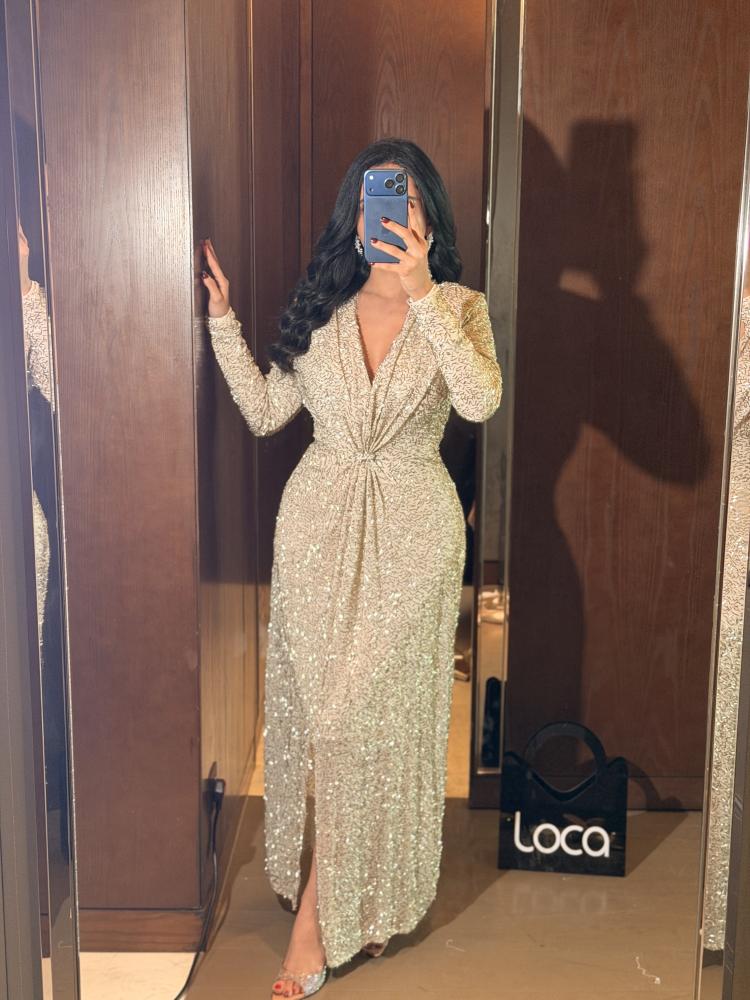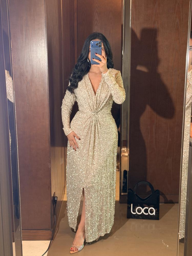 اختاري هذا الفستان الفضي المرصع بالترتر بتصميم لف أنيق ودعي إطلالتك تتألق بثقة اطلبيه الآن من متجر لوكا للفساتين واستعدّي لسهرات يظل فيها حضورك محط الأنظار.