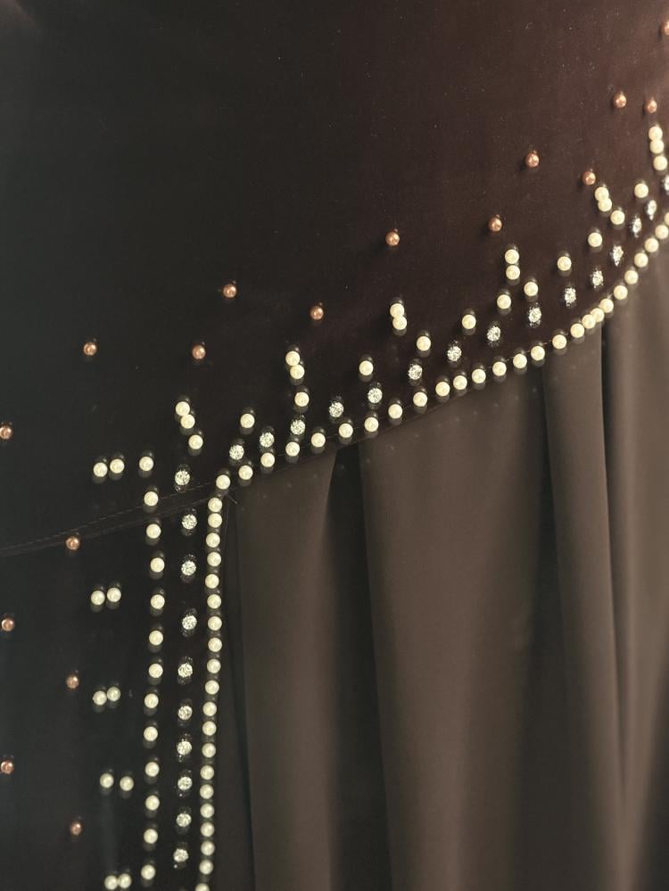 بالتأكيد، المخمل من أكثر الأقمشة فخامة للمساء ويجعل فستان مخملي بني خيارًا مثاليًا للسهرات الراقية.